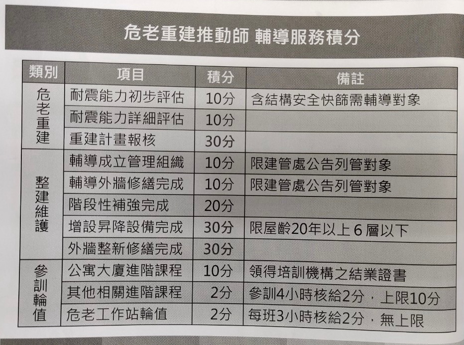 台北市危老重建推動師 六項公寓大廈輔導業務